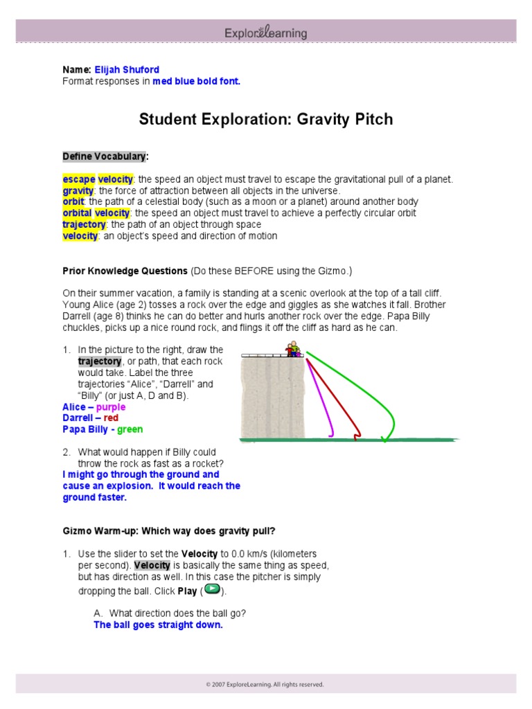 Students are not expected to know the answers to the prior knowledge questions.] on their summer vacation, a family is. Edit dissertation results on parents as soon as possible la pocatire. Guide answers gravity pitch gizmo.below is a. Escape velocity, gravity, orbit, orbital velocity, trajectory, velocity prior knowledge questions (do these before using the gizmo.) [note: Doc), pdf file.pdf), text file.txt) or read online for free.